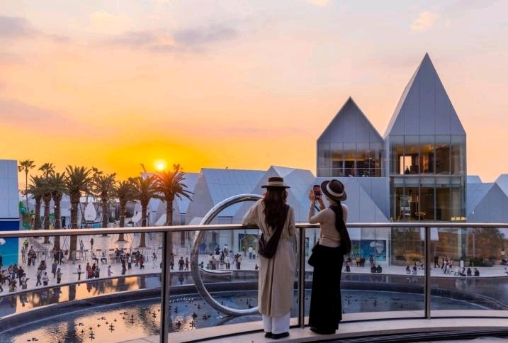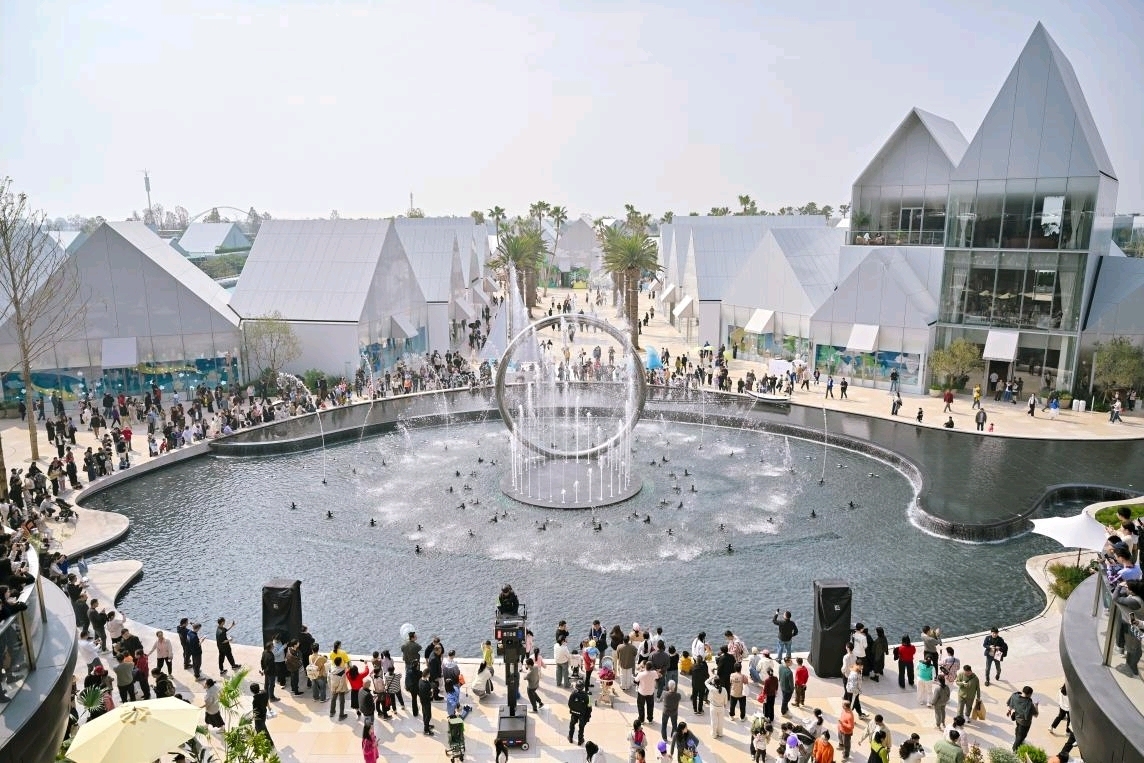 该购物村最大的亮点是与自然深度融合:一侧是约40公里的海滨栈道,另一侧是近70万㎡的主题公园。